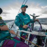 Depois de Vestas 11th Hour Racing e Dongfeng Race Team, o próximo a cruzar a linha de chegada será o team AkzoNobel. da brasileira Martine Grael.
