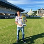 Gustavo Poffo, atacante de 25 anos. Cria do Figueirense com passagem também pelo Avaí. Sofreu com lesões no joelho e redescobriu o prazer de jogar futebol no Marcílio Dias. Foram 12 jogos na Copa SC de 2023 e 6 gols marcados. Artilheiro. Ninguém marcou mais que ele na competição. Campeão e com contrato renovado, Poffo planeja uma sequência na carreira que por pouco não foi abreviada.